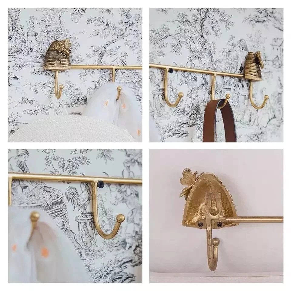 - :: 5 Hook Metal Wall Rack Bee Beehive