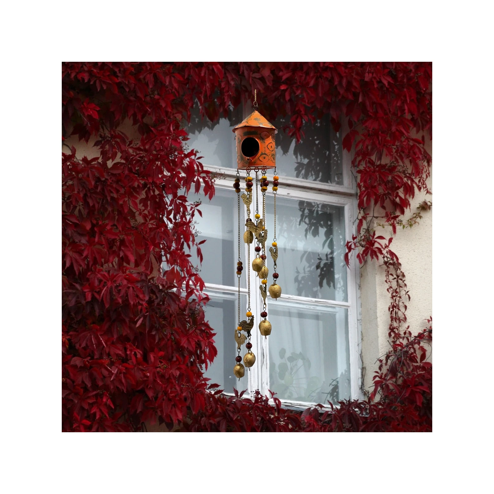 - :: Birdhouse Wind Chime Roosters Cow Bells Orange Metal