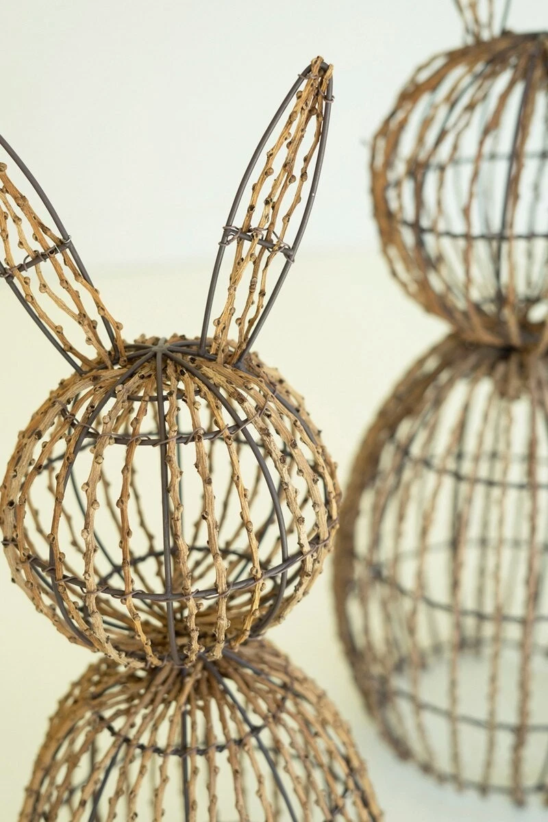 - :: Bunny Rabbit Figurine Set 2 Rabbits Twig and Wire