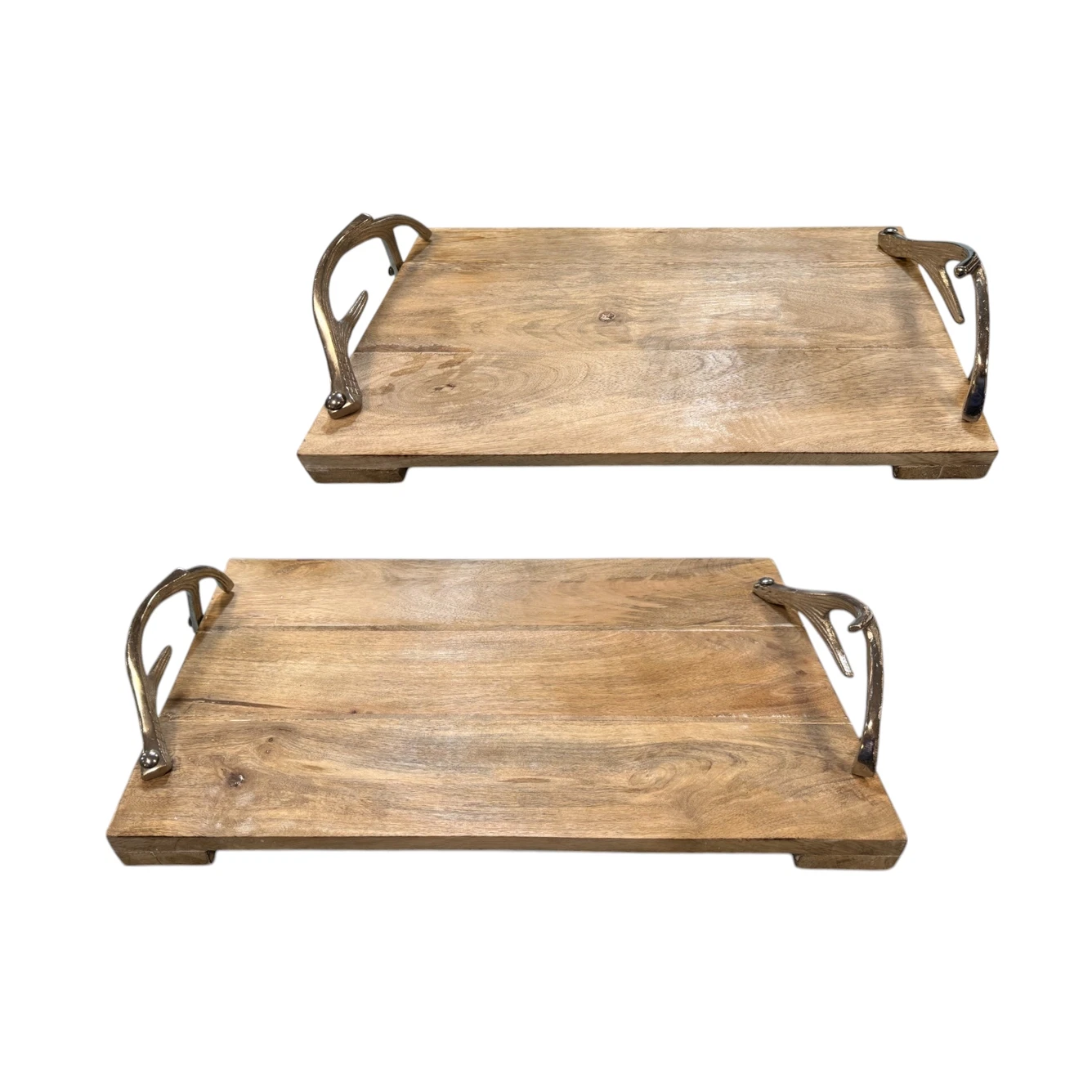 - :: Deer Antler Serving Tray Set 2 Wood Trays Metal Side Handles
