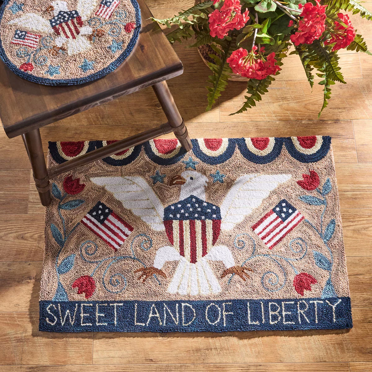 - :: Patriotic Hooked Rug Primitive Farmhouse Country Sweet Land of Liberty 2 x 3 ft