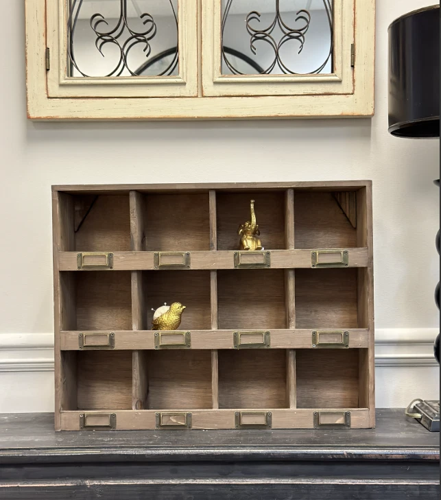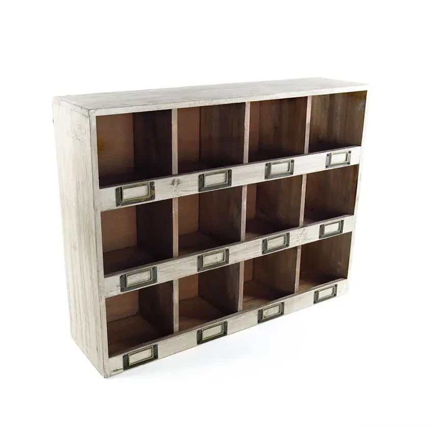 - :: Rustic Wood 12 Compartment Cubby Box Wall Shelf 21 x 16 Antique