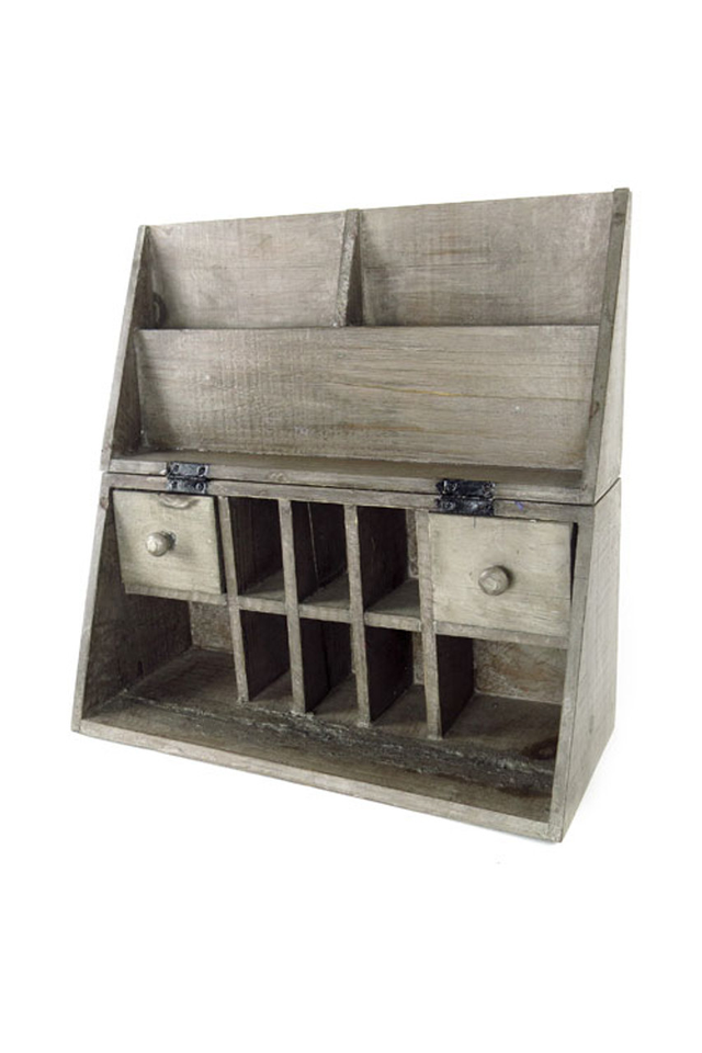 - :: Rustic Wood Cubby Tabletop Desk Organizer Primitive Farmhouse