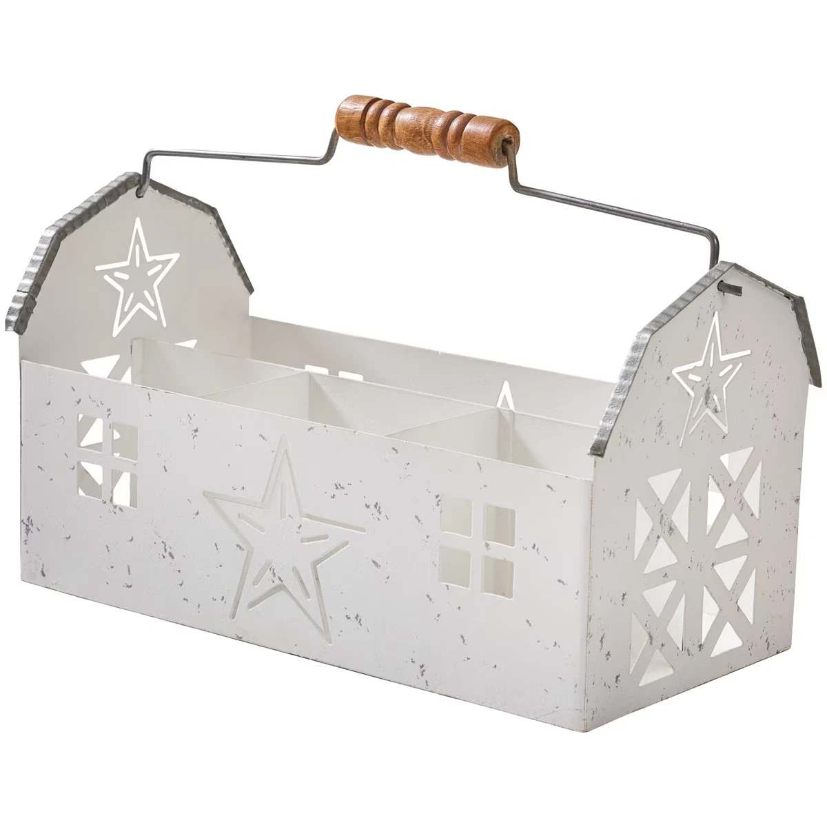 - :: White Barn Divided Caddy Country Farmhouse Metal Basket